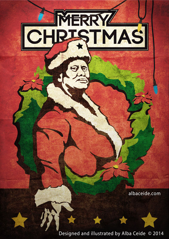 I did this Christmas postcard (2014) in Illustrator and Photoshop. The model is the actress Carmina Barrios.