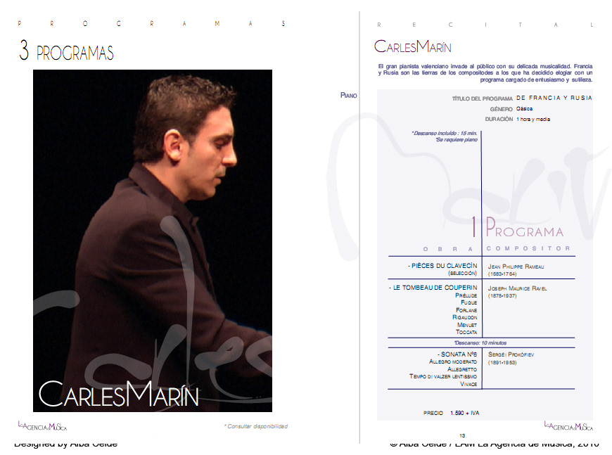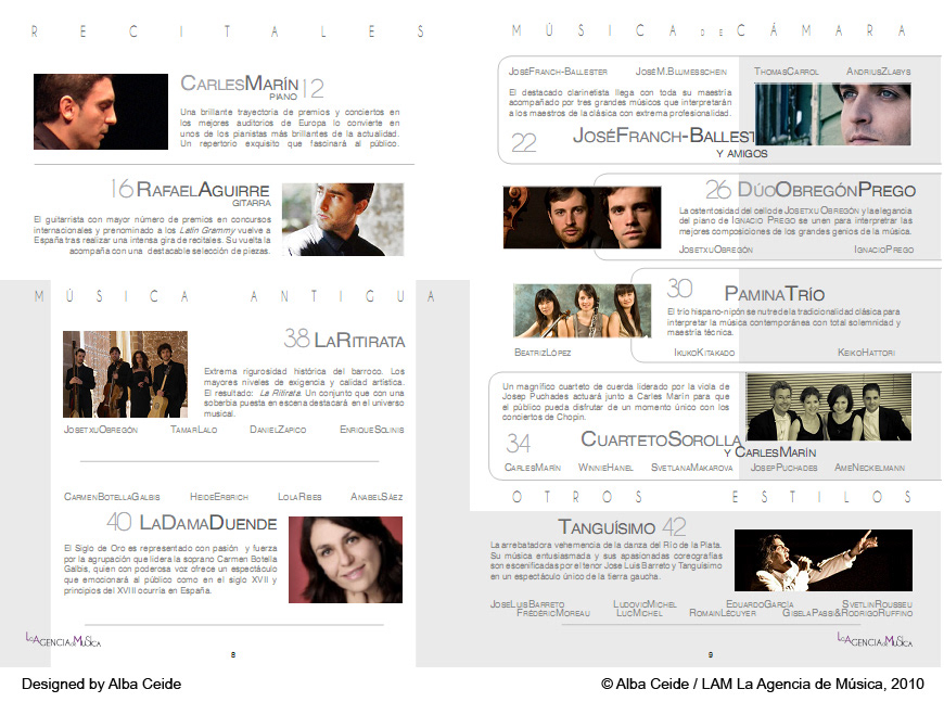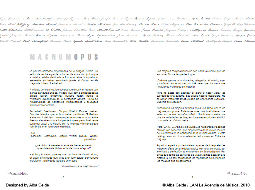 This magazine details the repertoire of the musicians of LAM La Agencia de Música.