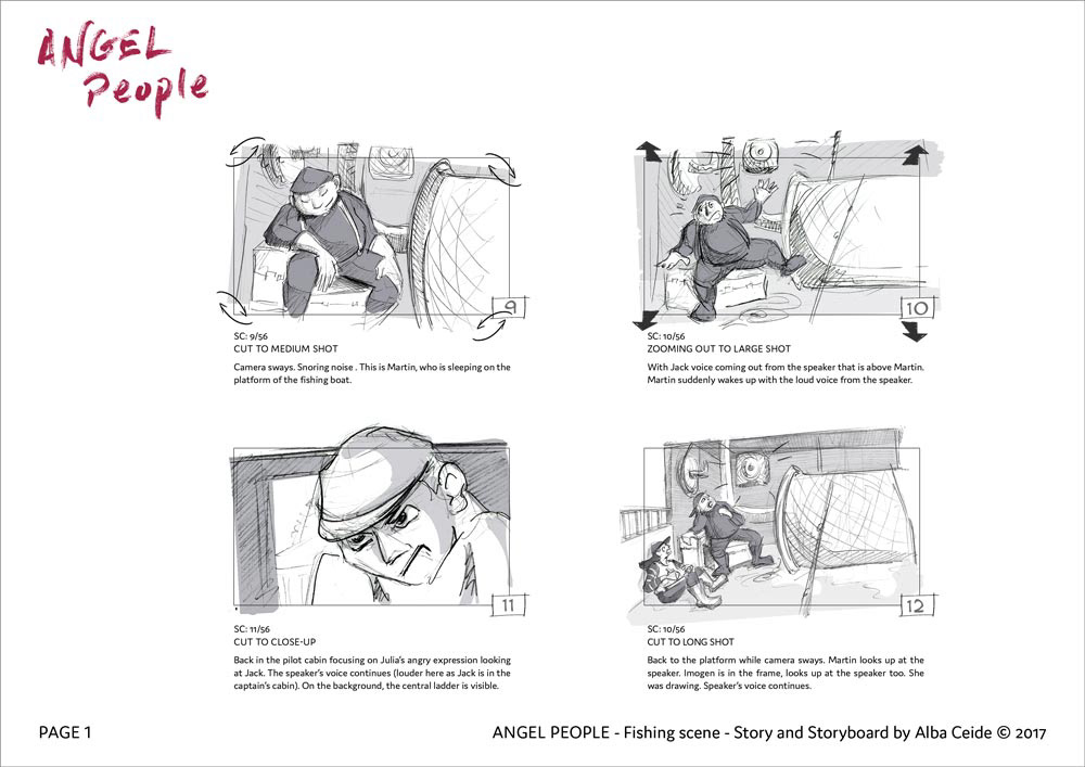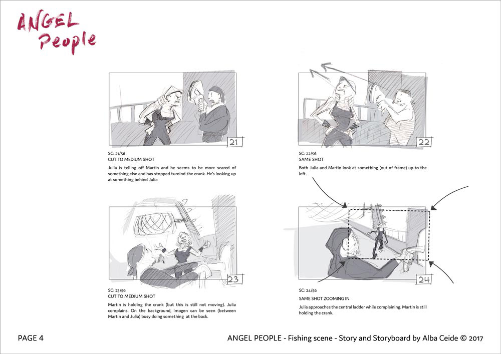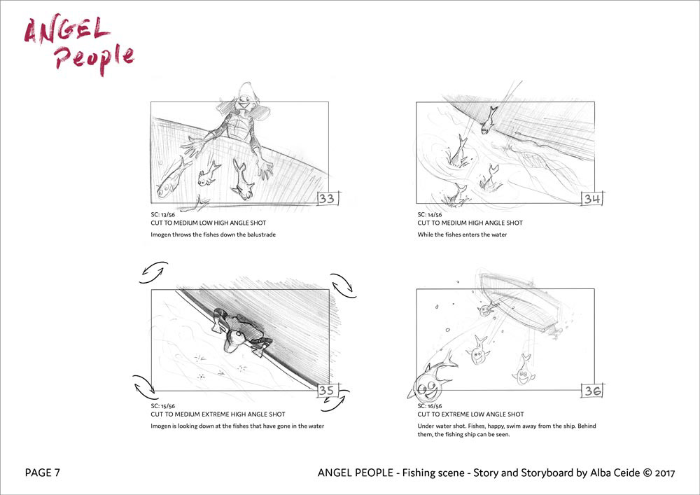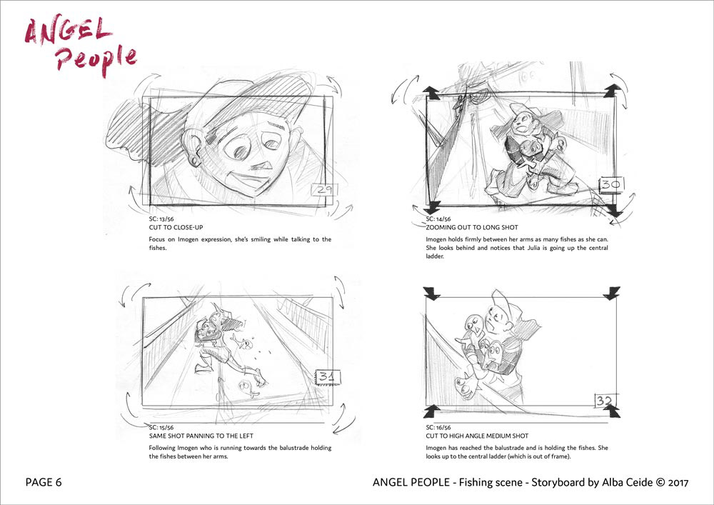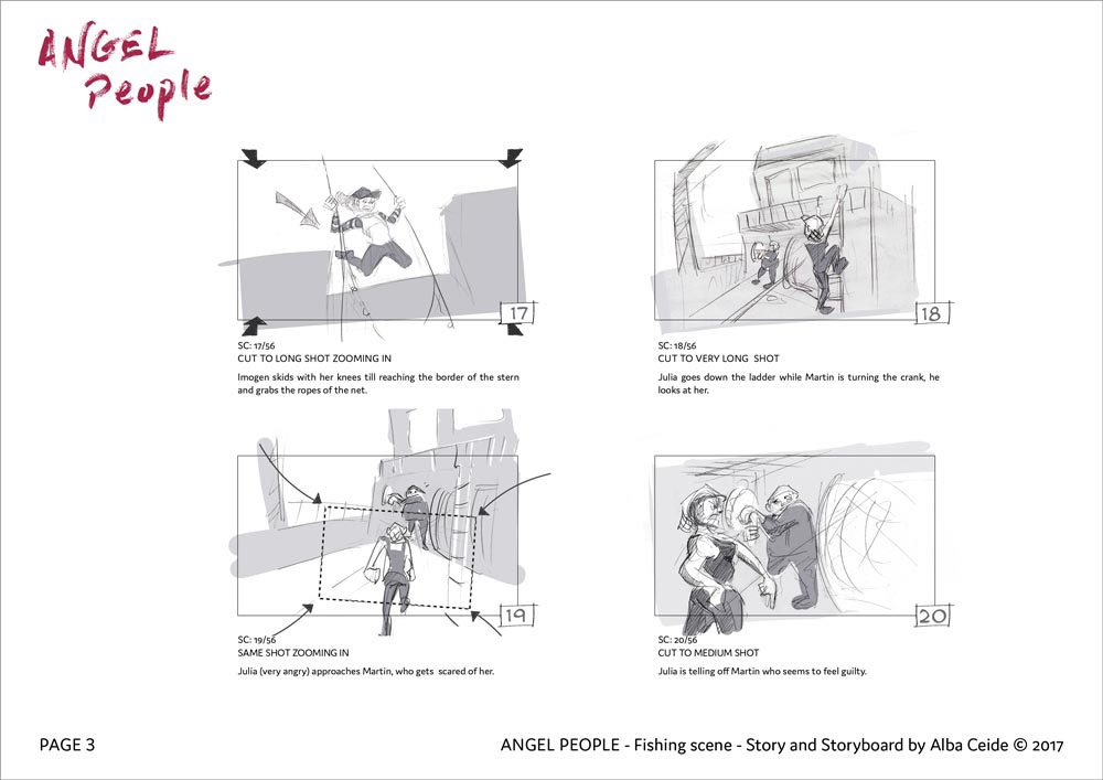 This is a storyboard I did for an animated scene of my comic Angel People.