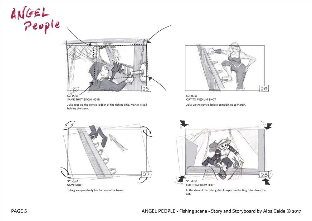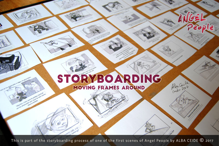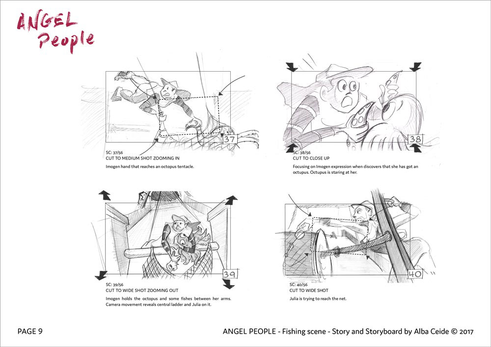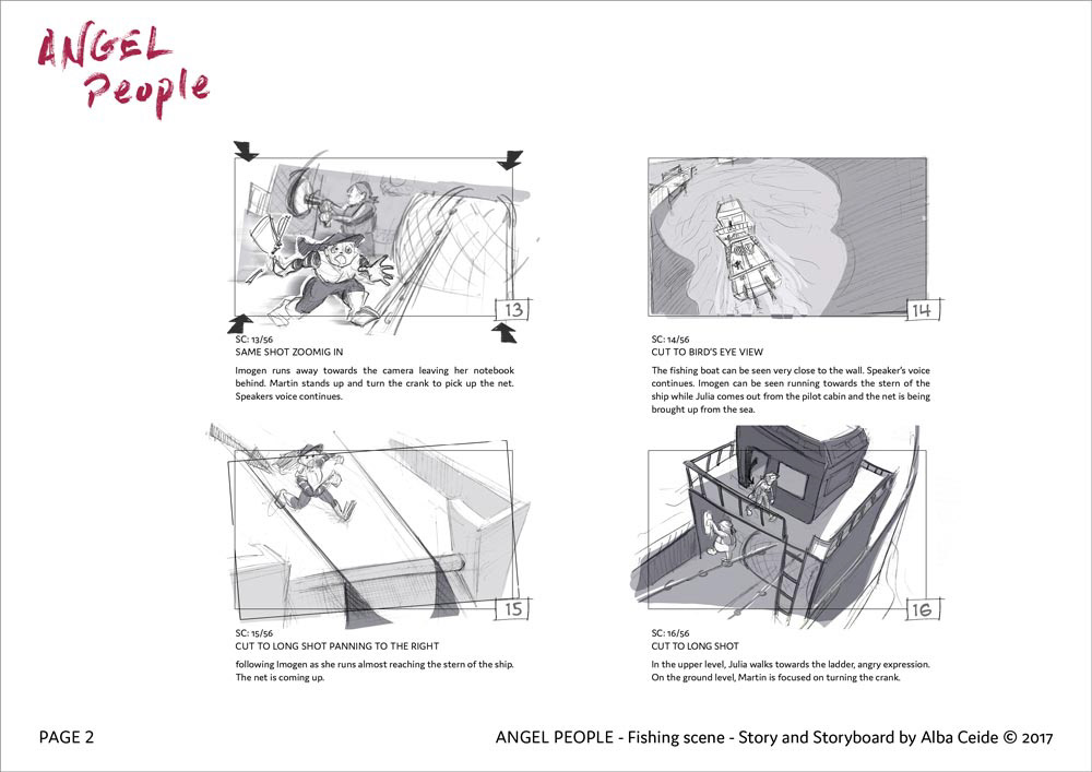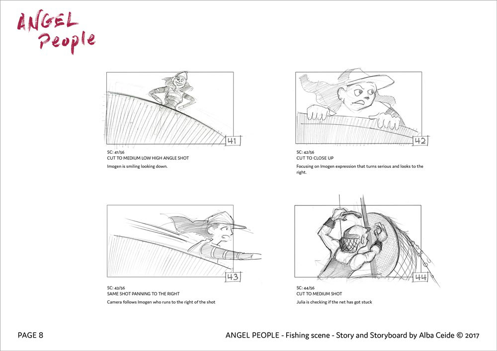 This is a storyboard I did for an animated scene of my comic Angel People.
