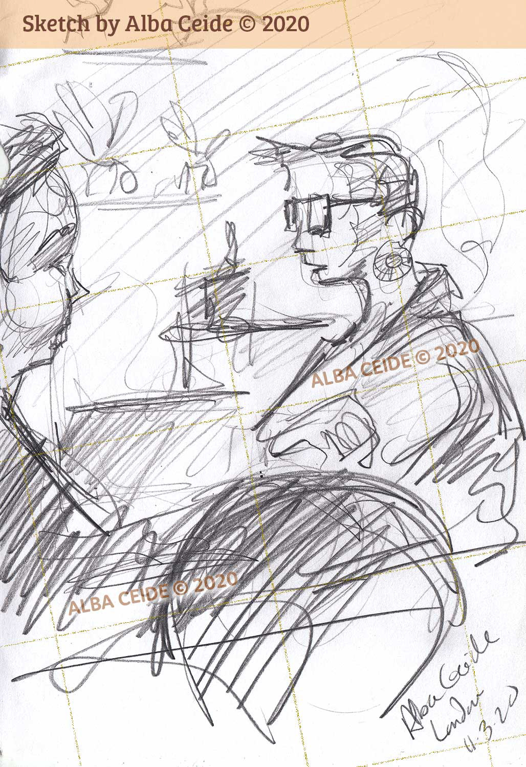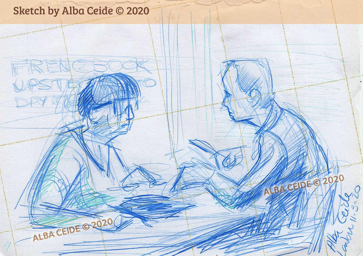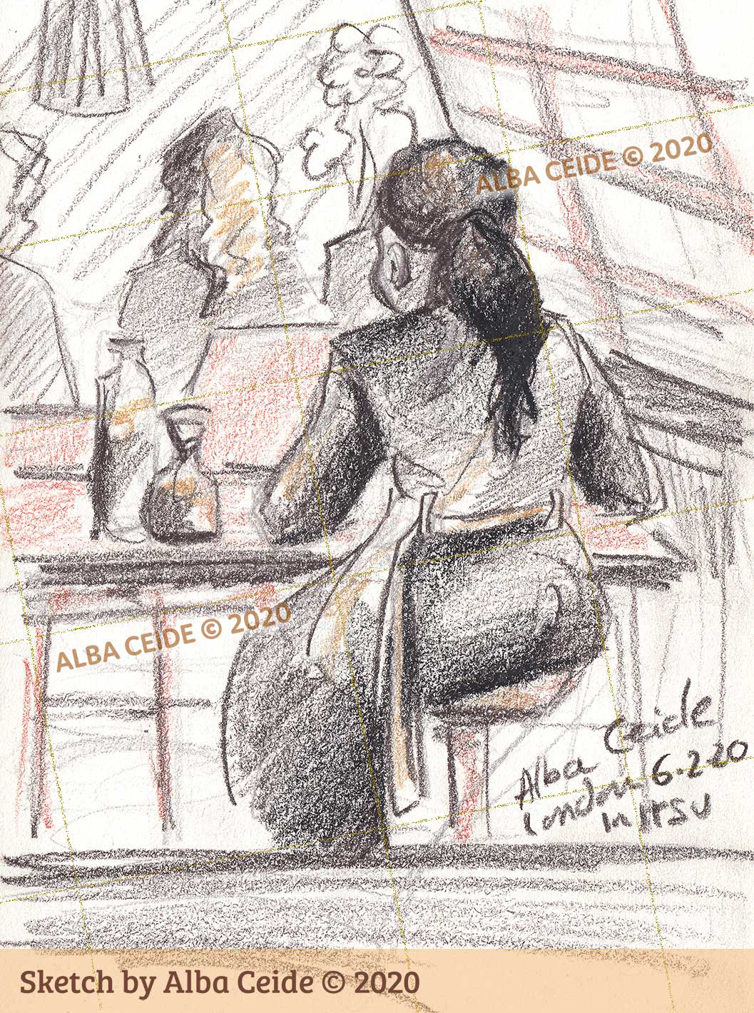 These are drawings I've done of people during their lunch breaks in various restaurants across the West End, London.