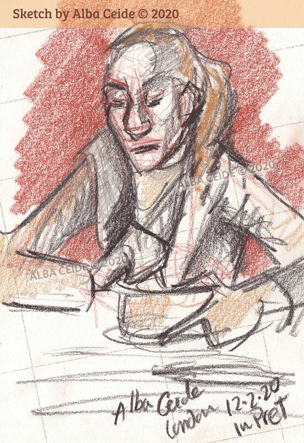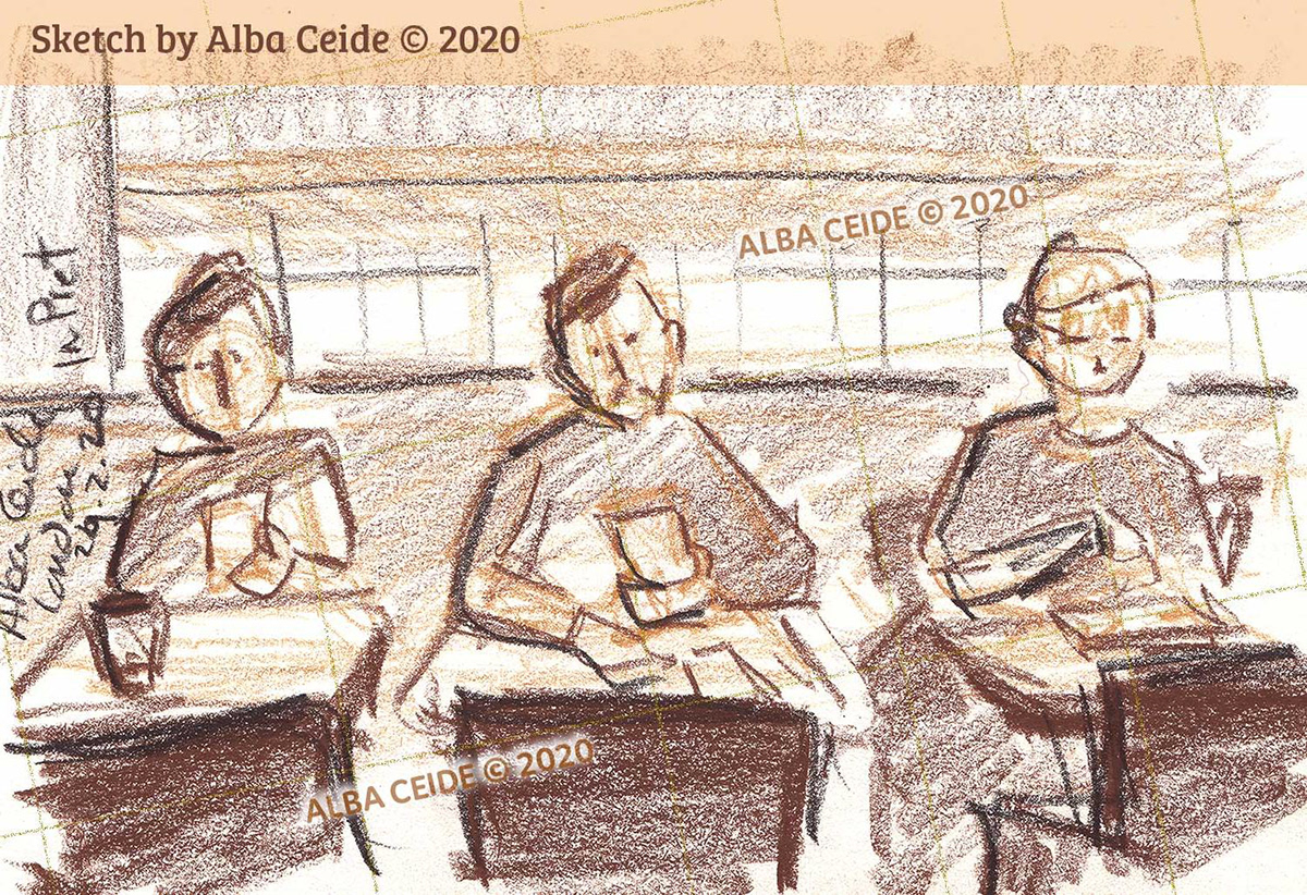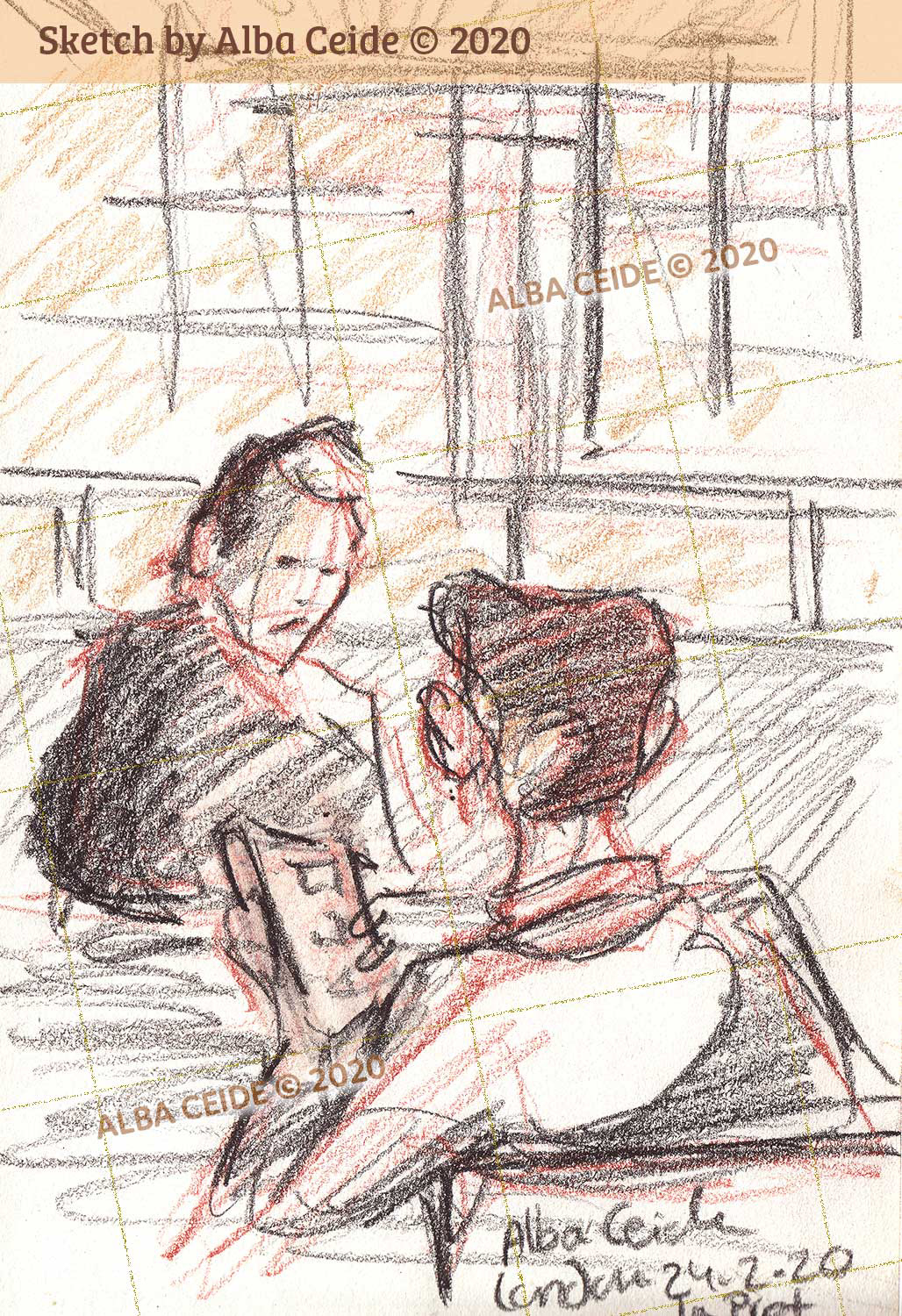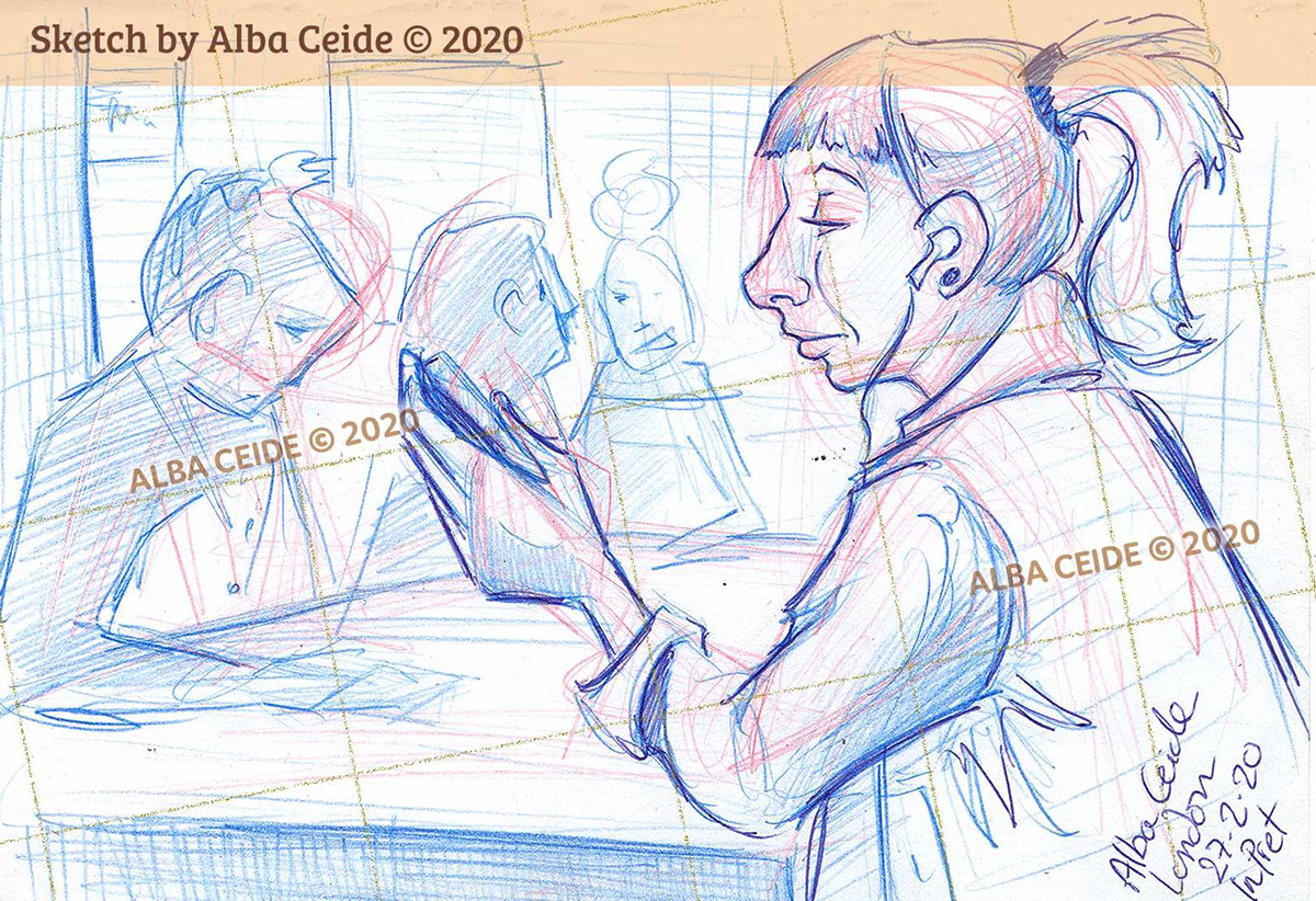 These are drawings I've done of people during their lunch breaks in various restaurants across the West End, London.